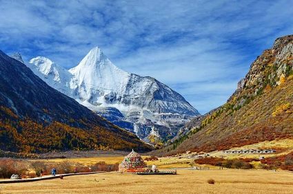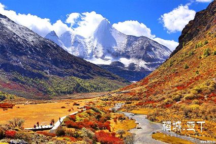 尤其亞丁匯集了稻城秋天所有濃烈的顏色:純凈的藍天,飛過(guò)白云間的蒼鷹,風(fēng)格獨特的藏鄉建筑,金黃的秋楊,深紅的沼澤,波光粼粼的小河,多么美的一幅油畫(huà),是人們歸隱田園的夢(mèng)想天堂。