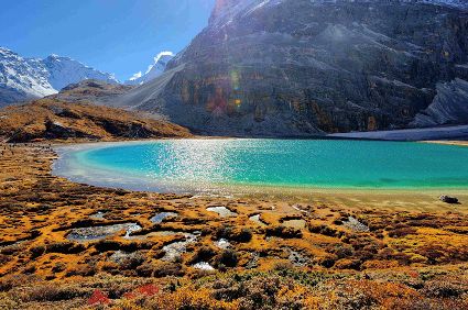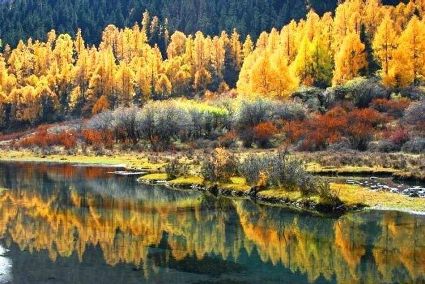 每年10月是稻城最美的季節,初秋的稻城已經(jīng)是絢麗多彩的,大片大片的高原草甸逐漸變?yōu)辄S綠色,環(huán)抱高原海子的水草也由養眼的綠色向迷人的金色過(guò)渡。