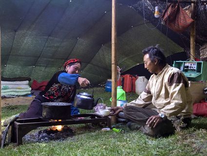 悄然而至的晨曦,隱藏著(zhù)太古未盡消遁的光芒。揚天的旌旗纏成不倒的箭桿,曾經(jīng)的故事還沒(méi)走出夢(mèng)中。草原的安謐,輕輕地撫慰著(zhù)平靜的牛群。奶香已浸漫晨的清新中,擠奶的姑娘臉頰已鍍上了紅霞的光暈。天地間的沉靜,只等待著(zhù)第一聲牛哞的響起……草原的清晨,朝陽(yáng)光臨的一刻,酥油和奶汁的淳香會(huì )醉倒那一片草色碧透的天地。