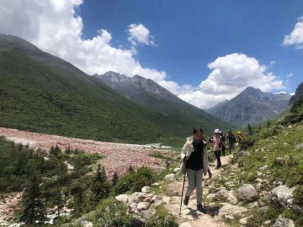 徒步過(guò)程中,可以看見(jiàn)貢嘎衛峰五色山系,沿途還能看見(jiàn)各種高山植物。雖是為看紅石灘,但看到的不僅僅是紅石灘的美,雪山、河流、草原、瀑布、冰川……一路美景逐一呈現。