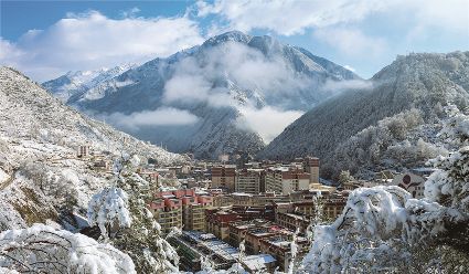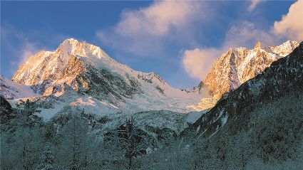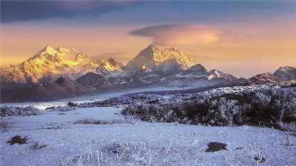 在一片片雪花的飄落中,冬天來(lái)了,它帶著(zhù)風(fēng)、帶著(zhù)雪,帶著(zhù)讓人不禁要裹緊衣服的寒冷來(lái)了,萬(wàn)物在冬的腳步中慢慢俯下身子貼緊了大地。蕭索、蒼涼、千里冰封、萬(wàn)里雪飄……在這些形容冬天的詞語(yǔ)里,我們看到的是只有黑白兩色的畫(huà)面,黑的是物,白的是雪。但是,在甘孜州,冬天卻是色彩繽紛的,不僅有白的雪,還有藍的天、綠的水、黃的樹(shù)、紅的葉……還有炊煙升起的藏寨、水汽氤氳的溫泉和日照金山的美麗景致。