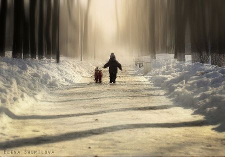 兩個(gè)毫不知情的小男孩兒無(wú)疑為這種電影畫(huà)面般精美的風(fēng)景上添上了最美的一筆。無(wú)論是在一條泥濘的小路,還是陰冷的森林,或是在室內。Elena捕捉到了那束最完美的光線(xiàn),正巧照射在小男孩兒的身上,如陰雨天突 然出現的太陽(yáng),一切都變得不再陰郁而充滿(mǎn)陽(yáng)光。Elena說(shuō),“我比較喜歡自然光,無(wú)論是在室內還是室外,我喜歡各種各樣的光線(xiàn)環(huán)境,街燈,蠟燭,煙霧, 雨天,雪天,任何一種都能給予畫(huà)面更深度的視覺(jué)沖擊與意義。