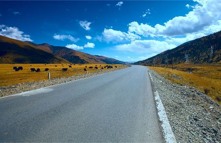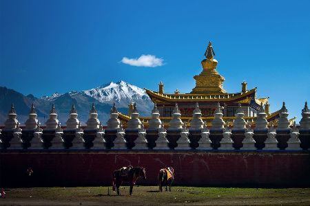 “塔公”,藏語(yǔ)意為“菩薩喜歡的地方”。相傳文成公主進(jìn)藏時(shí),途經(jīng)此地,隨身攜帶的釋迦牟尼佛像忽然開(kāi)口,示意愿留在此地。眾人立即就地按照佛像原貌復制一尊留下。從此,高原上有了被稱(chēng)為“小大昭寺”的塔公寺。塔公草原也因此而得名。自康定沿川藏線(xiàn)西行,翻越折多山,過(guò)新都橋后北行不多時(shí)便是塔公了。沿線(xiàn)的河流、草原、森林、山體、寺廟、藏寨構成了濃郁的甘藏風(fēng)情。高聳的雅拉雪山、起伏的草原、成群的牛羊和草原上金碧輝煌的“木雅經(jīng)塔”讓人留連忘返。