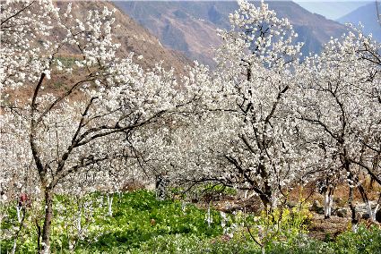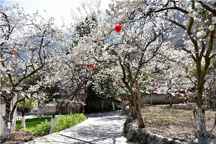 陽(yáng)春三月,瀘定陽(yáng)光明媚,到處生機盎然。大渡河畔的杵坭、田壩等地櫻桃花在田間競相綻放,一團團,一簇簇,一朵朵潔白的花兒緊緊簇擁著(zhù),綴滿(mǎn)枝頭。一陣陣微風(fēng)吹來(lái),櫻桃花隨著(zhù)枝條在風(fēng)中輕盈地搖曳。