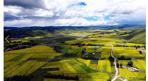 七月的川西高原是一年當中最美的季節。甘孜州雅江縣祝桑鄉境內、省道303道孚縣境內,漫山遍野的油菜花,一朵朵,一簇簇,一片片,仿佛一片金色的海洋。微風(fēng)拂過(guò),綠葉上的菜花隨風(fēng)搖曳,宛若千層波浪涌動(dòng)。藍天白云下,金色的菜花光彩奪目,花香四溢,蜜蜂、蝴蝶在花朵上翩翩起舞,你追我趕,好一幅世外田園的高原風(fēng)光,猶如一幅巨幅油畫(huà)鋪在川西大地上。