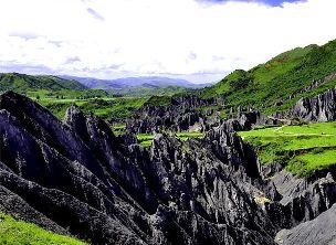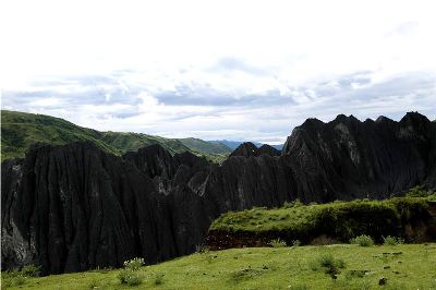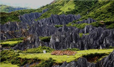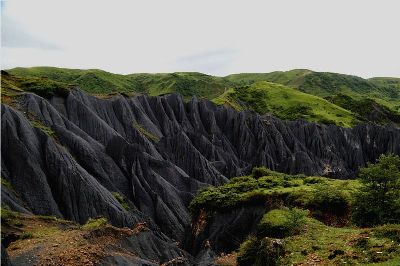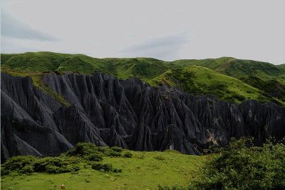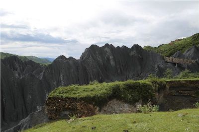 墨石公園,是中國唯一高原石林景觀(guān),被譽(yù)為“中國最美景觀(guān)大道第八美 ”。受第四紀新構造運動(dòng)影響,隨著(zhù)青藏高原的隆起,鮮水河斷裂帶中的巖石受到擠壓、剪切、破碎、糜化,形成糜棱巖石林。石林含丐鹽,受空氣濕度影響,干燥季節呈淺灰色、淺藍色,濕潤季節呈滄黑色,因此又稱(chēng)之為變色石林。