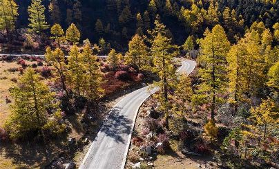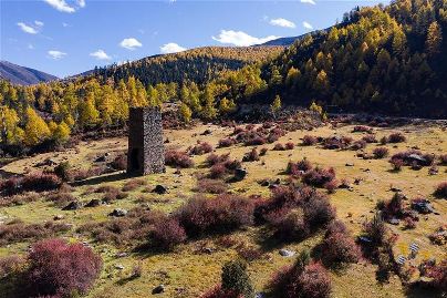 深秋時(shí)節,晴空、群山、秋葉在高原清澈的天光下勾勒出川西鄉城縣一幅幅美麗畫(huà)卷。