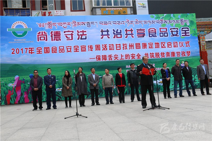 本網(wǎng)訊(記者 宋志勇 文/圖)6月29日,由州人民政府主辦的“2017年全國食品安全宣傳周活動(dòng)”暨康定地區啟動(dòng)儀式在康定舉行,目的是進(jìn)一步普及安全法律法規和基本知識,提高公眾的食品安全意識和自我保護能力,進(jìn)一步強化食品生產(chǎn)經(jīng)營(yíng)者的法律意識、責任意識、誠信意識,進(jìn)一步強化食品安全“政府負總責、監管部門(mén)各司其責、食品生產(chǎn)經(jīng)營(yíng)者是第一責任人”的責任,為構建食品安全長(cháng)效機制營(yíng)造良好的氛圍。