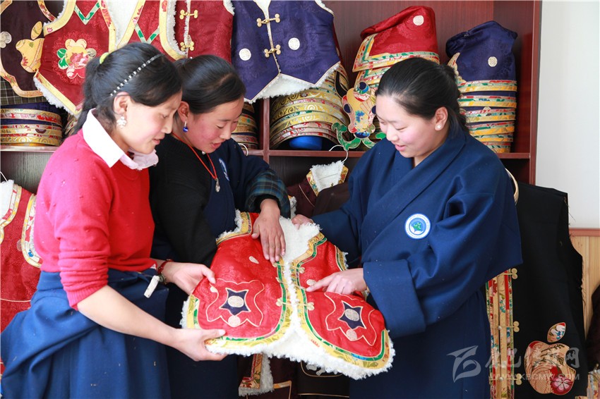 牧民通過(guò)加工藏裝致富增收。本網(wǎng)記者 田杰 攝