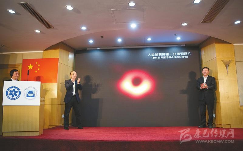 4月10日,中國科學(xué)院上海天文臺舉行新聞發(fā)布會(huì ),為人類(lèi)史上首張黑洞照片揭幕。新華社記者 金立旺 攝