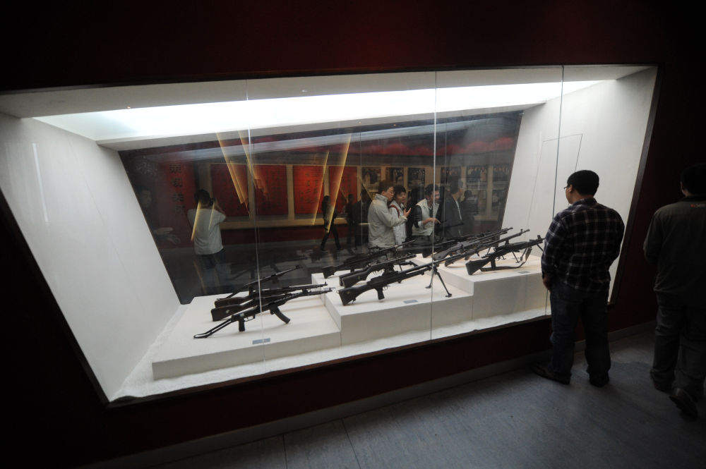 ↑ 觀(guān)眾在鹽城新四軍紀念館內參觀(guān)槍支等實(shí)物展品(2011年5月26日攝)。