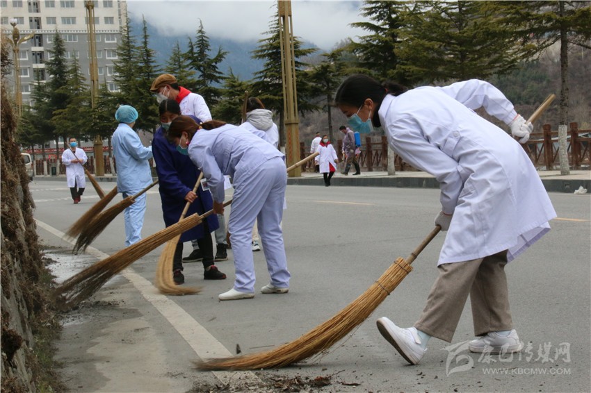 當日早上,當記者乘車(chē)駛入康定新城時(shí),一群“白衣天使”已在路口兩旁,拿著(zhù)掃帚、簸箕,背著(zhù)消毒液熱火朝天地開(kāi)展“周末衛生大掃除”活動(dòng)?!半m然今天是周末,但是為了充分發(fā)揮愛(ài)國衛生運動(dòng)的統籌協(xié)調作用和群眾廣泛參與的優(yōu)勢,以環(huán)境衛生整治、糞便污水垃圾處理和消除鼠、蟑、蚊、蠅等病媒生物孳生環(huán)境為重點(diǎn),我們從新城入口開(kāi)始到華西甘孜醫院二院一路打掃下來(lái),看到煥然一新的街道很有成就感,作為一名醫護人員參與這樣的活動(dòng)感覺(jué)非常有意義?!比A西甘孜醫院的醫護人員易璽拉姆告訴記者。