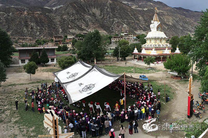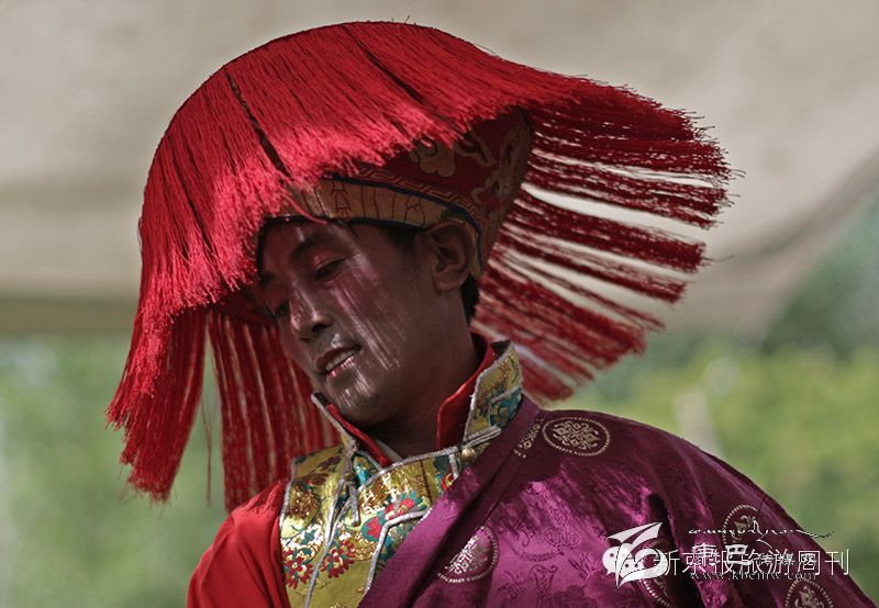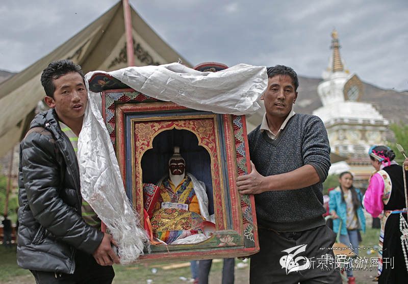 演出時(shí)他們會(huì)把藏戲創(chuàng)始人唐東吉布的雕塑供奉在現(xiàn)場(chǎng)。