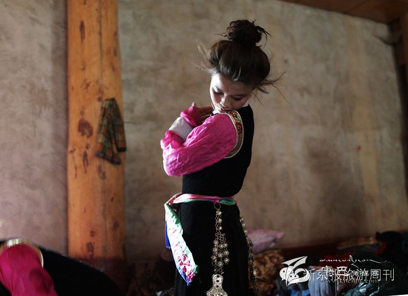 巴塘弦子藝術(shù)團(tuán)的演員在換裝。