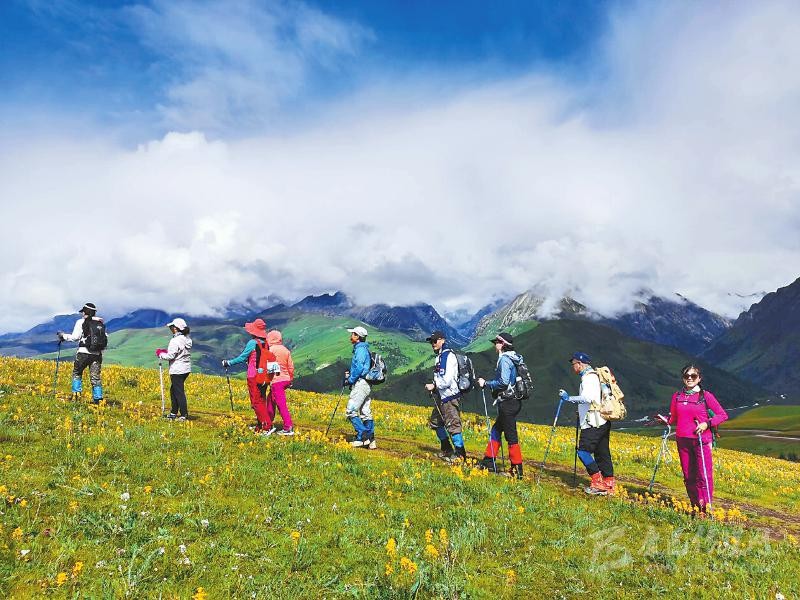 本網(wǎng)訊 8月2日,來自全國各地的游客在理塘縣格聶景區(qū),徒步體驗格聶神山秘境之旅。