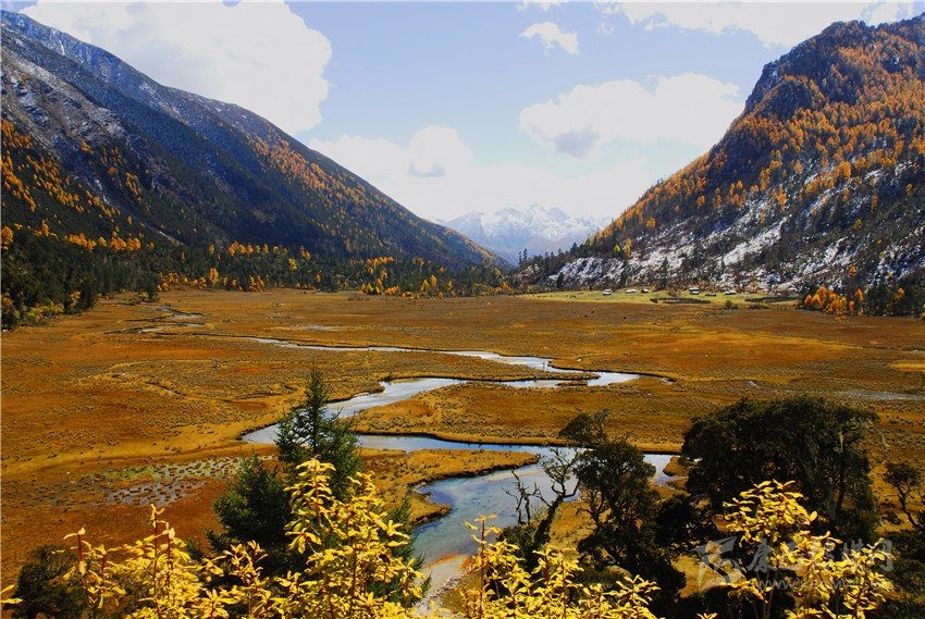 第一場秋雨開始的時候,高山上便開始飄起了雪花,到了九月左右,圣潔的雪山便開始層層包裹雪白的衣衫,為來年的春夏積攢滋養(yǎng)的泉水。秋天沿著山峰從高處漸次向下,一些低矮的灌木也迫不及待的穿上絢爛的秋裝。陣陣秋風吹過,色彩自然越加濃烈。