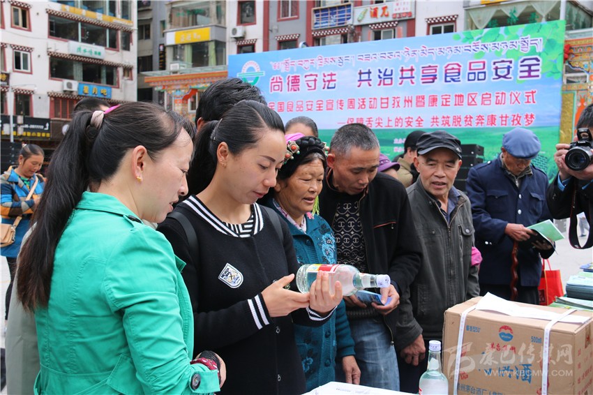 啟動(dòng)儀式后,在康定情歌廣場(chǎng)上,來(lái)自州食安委和康定市食安相關(guān)成員單位通過(guò)現場(chǎng)咨詢(xún)、板塊展示、張貼海報標語(yǔ)、發(fā)放資料等方式,為前來(lái)關(guān)注食品安全的市民們發(fā)放和講解相關(guān)問(wèn)題。在現場(chǎng),記者看到廣大市民關(guān)注最多的是假冒偽劣食品,對于如何識別,現場(chǎng)工作人員都一一進(jìn)行了耐心細致地講解。