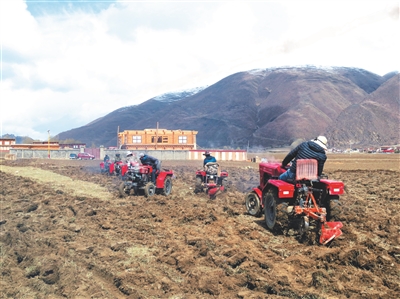 本網(wǎng)訊(唐書(shū)偉 攝影報道)正值春耕時(shí)節,甘孜縣南多鄉非貧困村俄絨村的田地里機器轟鳴,新翻的泥土彌漫著(zhù)濃濃的春意。在鄉黨委政府的帶領(lǐng)下,村民們忙著(zhù)種植劍舌豌豆,一派忙碌景象。 據悉,甘孜縣黨委、政府在脫貧攻堅工作中堅持一個(gè)村都不拉下,不僅僅抓好今年退出村的產(chǎn)業(yè)發(fā)展,還為非貧困村爭取了近1000畝劍舌豌豆、紅豆草等種植項目。