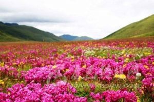 木雅圣地景區坐落于康定折多山西側的“木雅辛康”,是一座以民俗風(fēng)情與自然風(fēng)光相結合的,以體現藏族木雅文化為主題的專(zhuān)題旅游區。擁有雪山、草原、花海、河流、湖泊和木雅藏族民俗文化等眾多旅游景觀(guān),共有5個(gè)主要景點(diǎn),“花海尋蹤”是當年木雅公主很愛(ài)游玩之地,也是整個(gè)景區花開(kāi)得很早很茂盛的地方?!拌笠羲透!笔悄狙诺貐^享有盛名的藏傳佛教寺廟?!疤旖缒粮琛笔悄狙艊鴤鹘y的冬季放牧之地,這里牧草極為豐富?!胺鹩幽狙拧笔且粋€(gè)用經(jīng)幡制作而成的釋迦牟尼佛像?!叭悍鍑痢笔亲o衛木雅國的一道天然屏障。