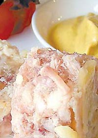 彝族風(fēng)味肉凍,這是彝族地區較為講究的一種菜肴。它采用豬蹄和肘子制做而成。一般做法是將肉放入鍋內煮軟后撈起,剔去骨頭并將肉宰碎,放上木姜、生姜、花椒等佐料,有的還放橘子皮,或雞蛋之類(lèi)的東西,然后放回鍋里煮上一陣,以便使佐料滲入肉中,最后放入木缽內,放上一夜即成。肉凍柔軟可口,香味獨特,是彝族十分喜愛(ài)的一種食品。