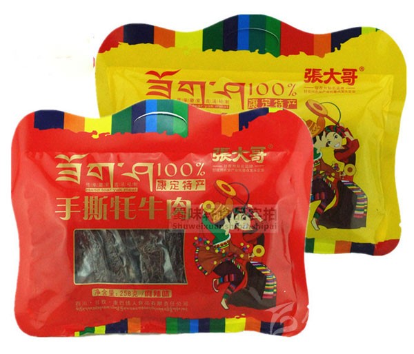 李家溜溜的大姐,人才溜溜的好喲。張家溜溜的大哥,看上留溜的她喲。月亮彎彎,看上溜溜的她喲……一首《康定情歌》,不僅唱紅了溜溜情歌城康定,也唱紅了張大哥牛肉干。作為康定本土特產(chǎn),牛肉干肉質(zhì)鮮美,價(jià)格實(shí)惠。值得購買(mǎi)。