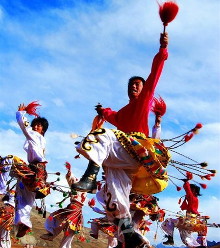 "熱巴"過(guò)去是專(zhuān)業(yè)民間藝人賣(mài)藝求生的一種技巧和難度很大的舞蹈。熱巴隊的組成一般以家族為核心,或幾家人合作組隊,多者20人,少者4、5人,都是能歌善舞又各懷絕技之人。有弦子(二胡)、鼓、鈴鐺等樂(lè )器伴奏。整場(chǎng)演出完整嚴謹,其中戲劇及體育內容豐富且有寓意,是一種很有健身作用的民族民間體育舞蹈,其高超的表演技藝和完美的藝術(shù)風(fēng)格享譽(yù)國內外。