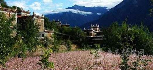 在青山腳下,綠樹(shù)環(huán)抱,小溪流徑之地,遠遠地便能看見(jiàn)屋檐下、窗戶(hù)的壁墻上勾畫(huà)著(zhù)象征純潔白線(xiàn)的藏寨民居。一幢幢藏寨民居那么和諧地與大自然構成一幅美麗的風(fēng)景。