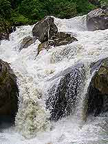 溝外交通與燕子溝大致相同,從南門(mén)關(guān)溝至兩河口14.5千米,在這里分做兩條路,一條往西南去牛園子和冰川,一條往西北去蟲(chóng)草棚子(二號營(yíng)地)和冰川。這里沒(méi)有食宿,道路艱險,馬不能通行,需要當地向導。